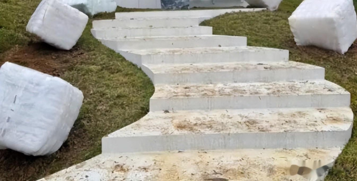 阶梯两边摆着 5 块方形石块,左边 3 块右边 2 块,有人解读这是象征大 S 的父母、姐妹和子女,也有人说代表她人生的 5 个重要阶段。
