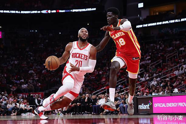 本场比赛中,火箭的替补侧翼新援约什-奥科吉(Josh Okogie)的表现还是具备一定的亮点的。奥科吉全场出场19分35秒,投篮8中4,三分线外3中1,得到了9分3篮板3助攻1抢断的数据,还有4次犯规,正负值为-23。奥科吉在进攻端的效果还算是马马虎虎,他也是展现出了一定的得分能力的,他的进攻效率也算是比较稳定的,他也是得到了一定的分数。不仅如此,他在防守端也是比较积极的,也是能够起到一定的效果的。只是问题就在于,奥科吉只是一名身高193cm的球员,他作为一名三号位球员都有些偏矮了一些,结果在四小一大的阵容中,奥科吉甚至不得不扮演大前锋,这也导致了他多多少少有些力不从心,这也是他的正负值非常糟糕的重要因素。