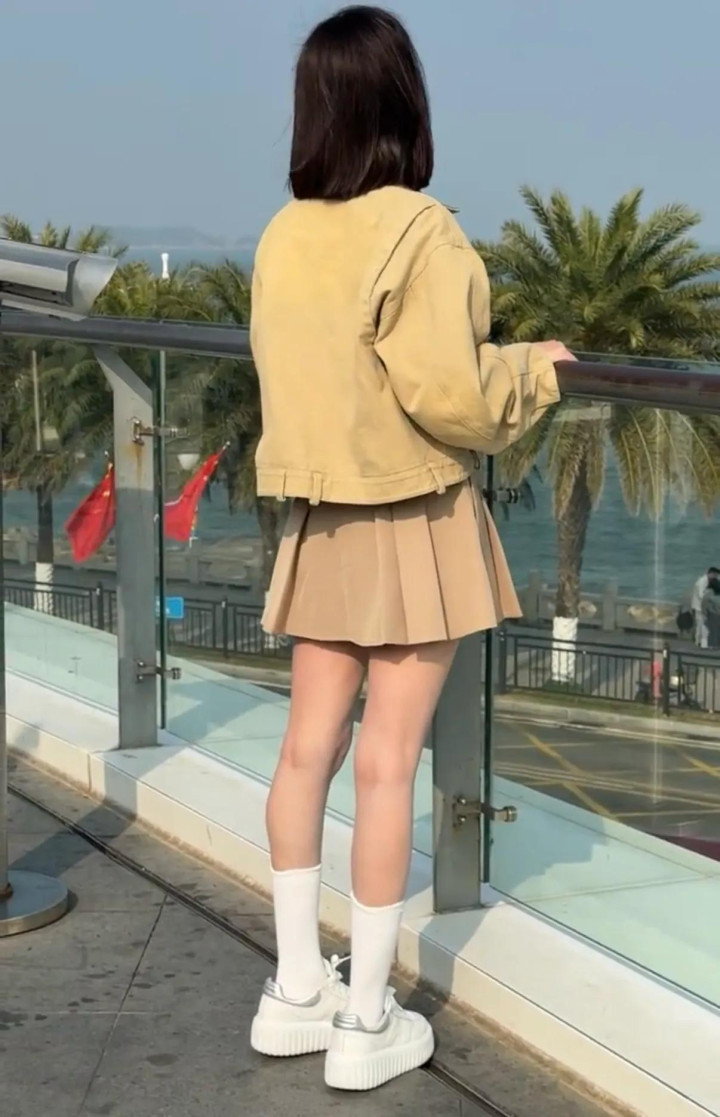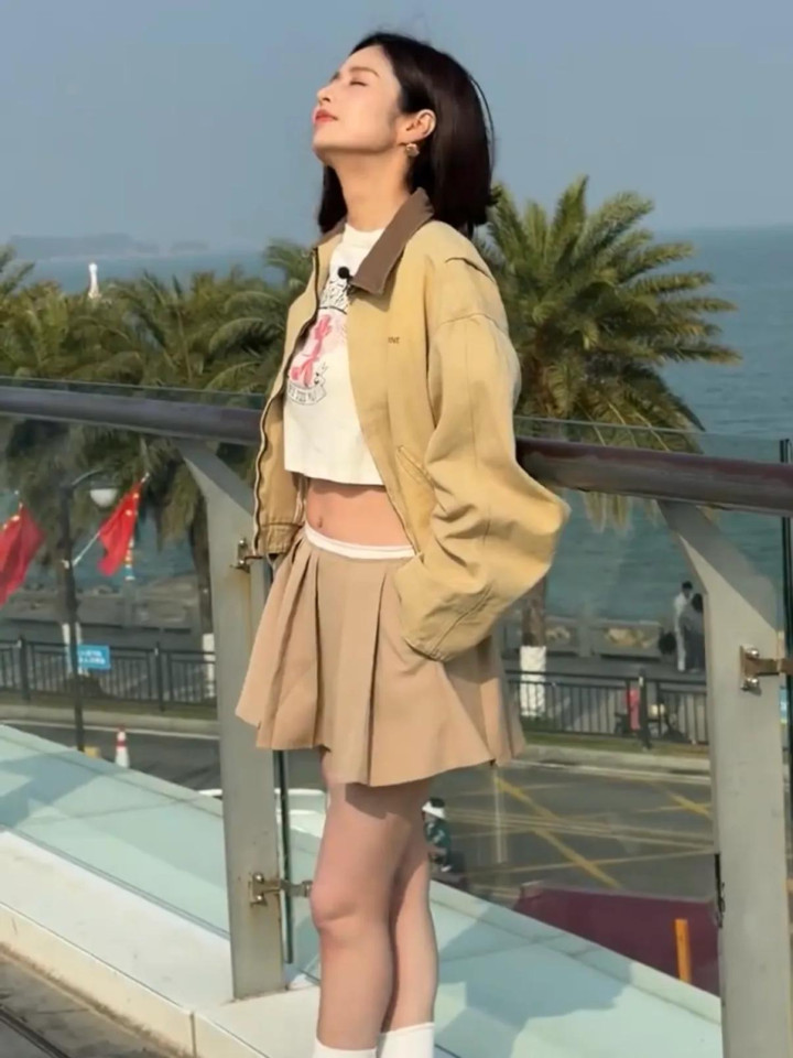 照片中,颖儿身穿卡其色外套和百褶短裙,搭配辣妹t恤和长筒袜,一身减龄打扮尽显青春活力,妥妥的美少女既视感,状态看起来超好。这个状态感觉真的不像是37岁呀,真的特别显嫩。