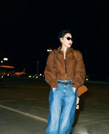 张柏芝当妈后状态越发年轻! 穿棕色夹克+阔腿裤, 时髦又减龄!