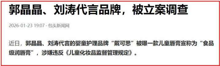 如果说前两个瓜是艺人个人失德,郭晶晶与刘涛的代言暴雷,则让国民度成了双刃剑,1月27日,二人共同代言的跨境电商平台被曝涉嫌非法吸收公众存款、虚假宣传,官网与APP连夜关停,负责人被控制,大量消费者面临资金无法追回的困境。