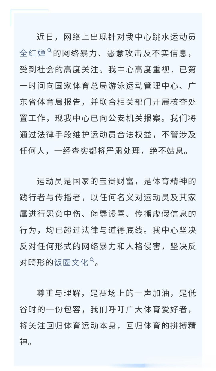 同样是奥运冠军、世界冠军,同样遭遇严重网暴,全红蝉的“单位”替她报了警,却从来没看到朱婷和王梦洁的“单位”替她们报警。