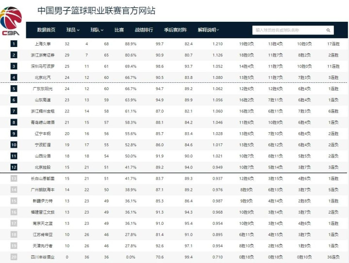至于剩下的六支球队,本赛季基本上就这样了,进入季后赛的希望非常渺茫。在这几支球队中,最让人感到可惜的是新疆男篮。这支球队上个赛季的常规赛排名非常不错,季后赛也打入了八强,但本赛季却只排在后几位,球队的问题非常多。最后说一句,四川男篮已经遭遇了36连败,本赛季还未尝一胜,有可能会创造赛季全败的历史记录!