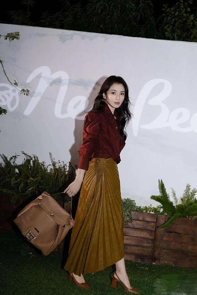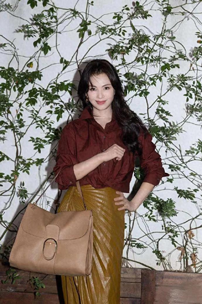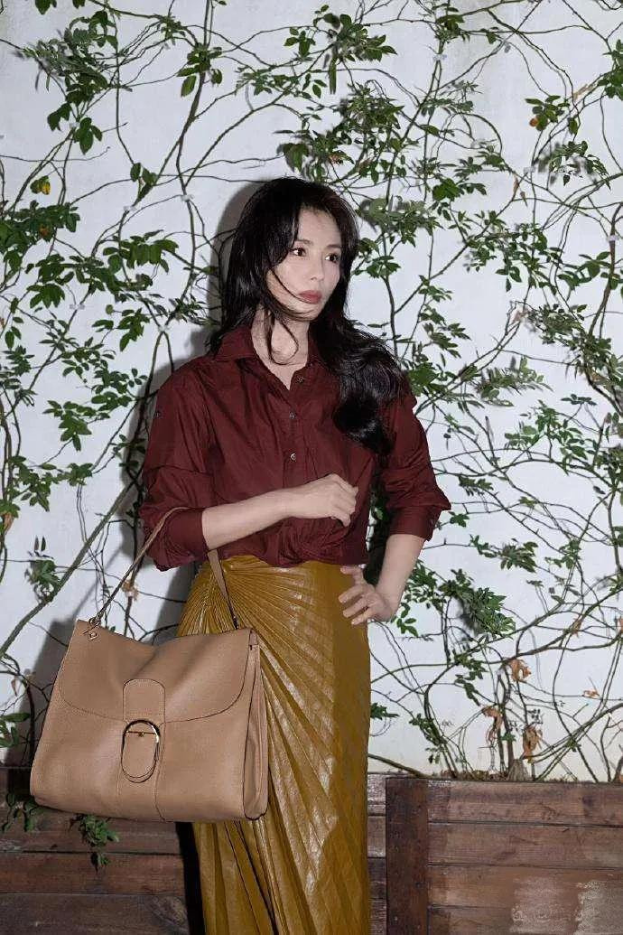 刘涛越来越会穿! 安可拉红衬衫配皮裙, 时髦又高级!