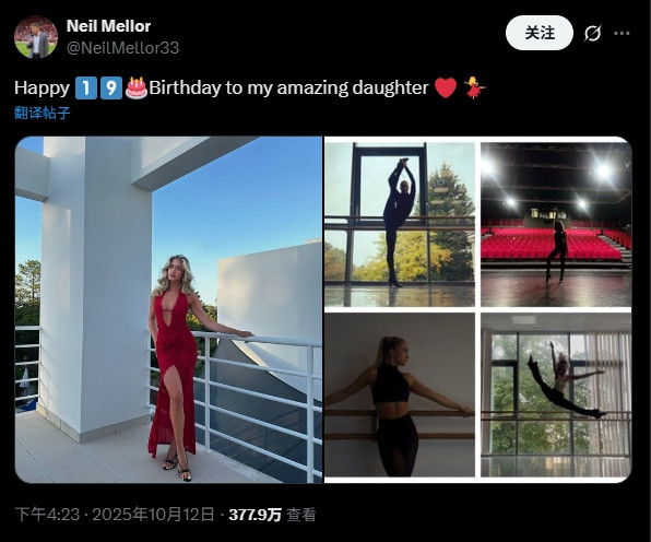 直播吧10月15日讯近日,一则利物浦旧将尼尔·梅勒祝福女儿19岁生日快乐的动态突然爆火,单平台阅读量近400万次。